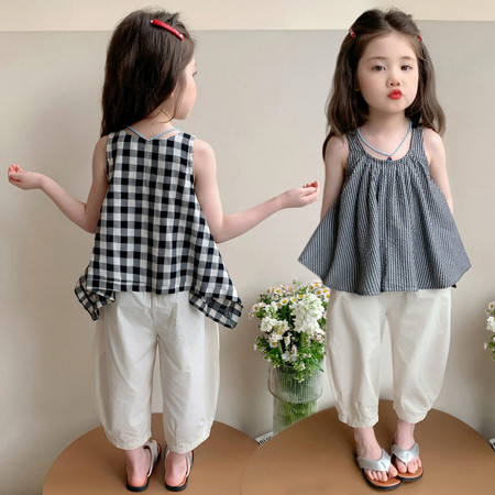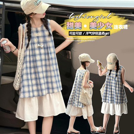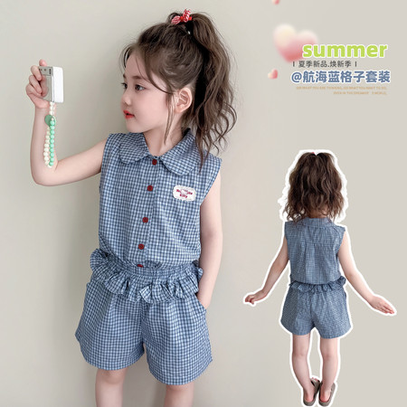七色雨&2616无袖格子牛仔短裙套