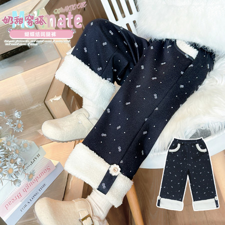 米咔精灵&2765蝴蝶结条纹加厚打底衫舒适百搭休闲