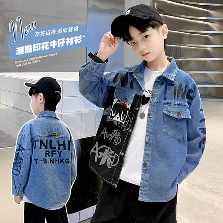 星星年华&DX07127男童纯色宽松牛仔衬衫