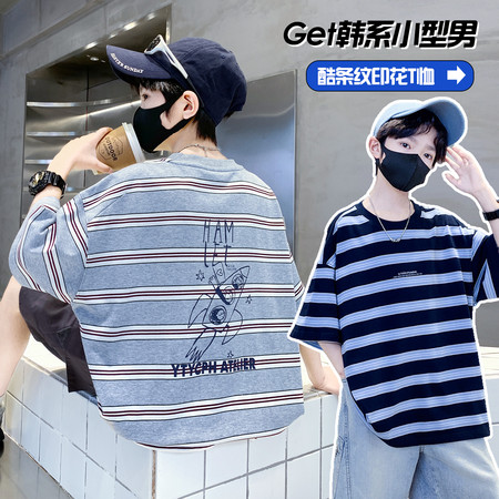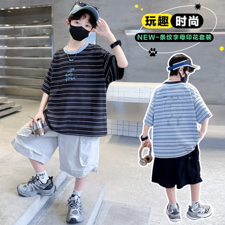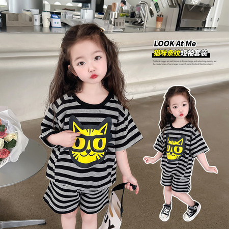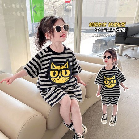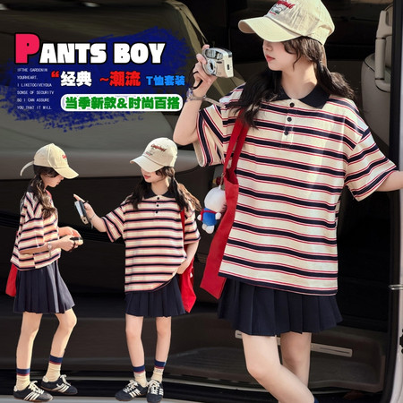 小豆町&B1-2513木马贴布撞色条纹连帽套装