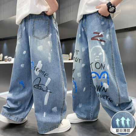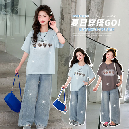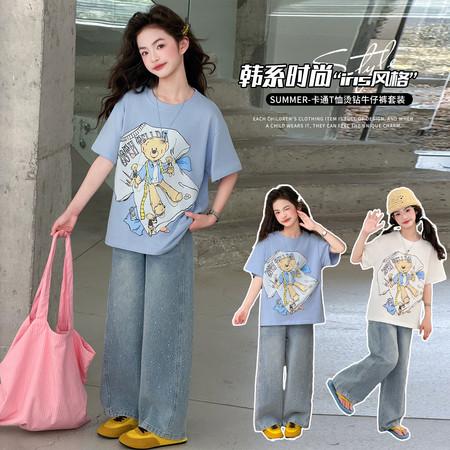睿豆豆&2643轻薄透气烫钻牛仔裤