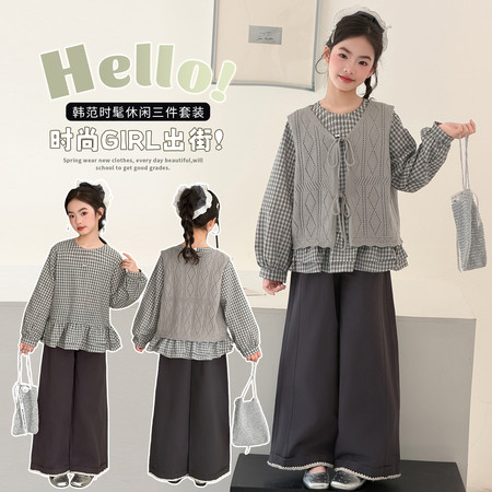 巴啦小妞&2360格子直筒裤