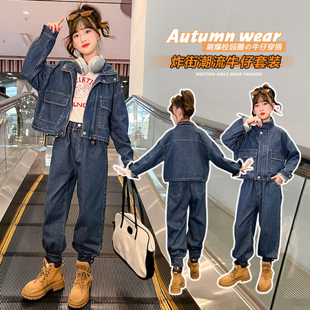 星星年华&DX03868蓝色工装拉链牛仔套装