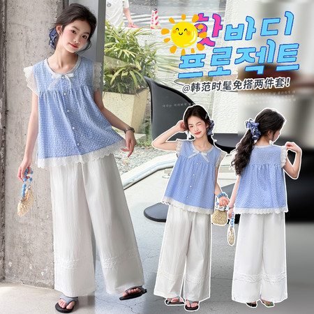 潮.尚&CS8551纯棉无袖格子裤套装