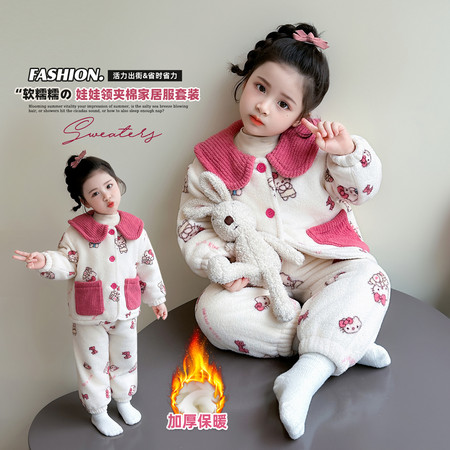 亿棵树童装&Q1262款芝士半边绒睡衣套装
