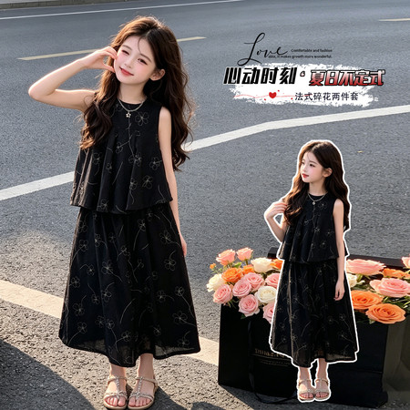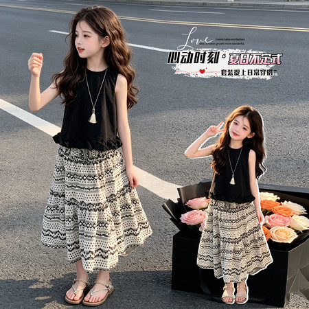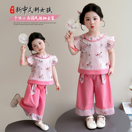 nn童装&25183---夏款织金小鹿马面裙套装