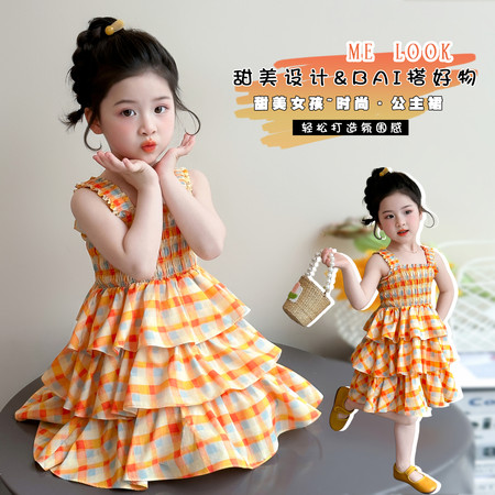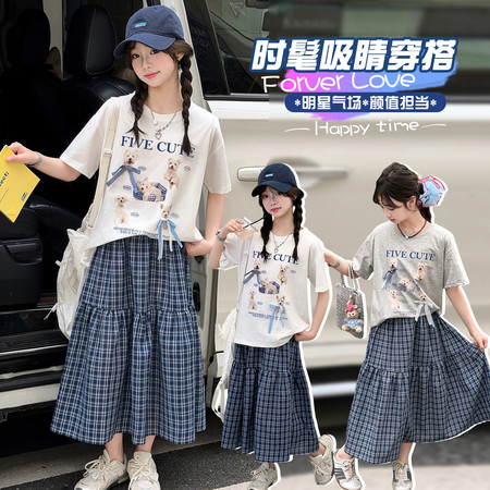 亿棵树童装&Q1621格子上衣牛仔裙套装