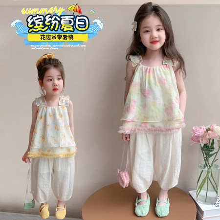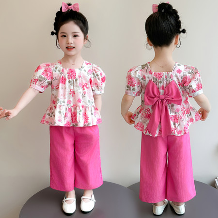 优米家&碎花蝴蝶结灯笼裤套装