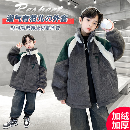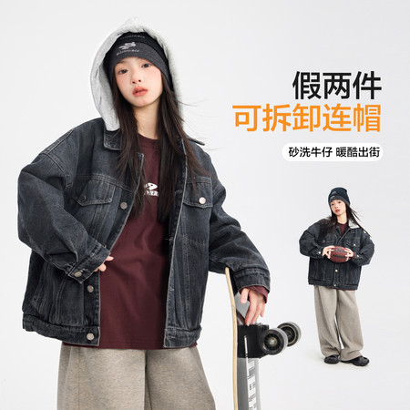 今童旗&2576牛仔拼接毛毛衣加棉