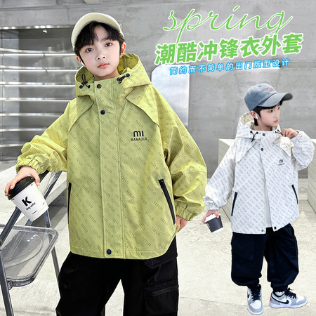 潮.尚&CS8329绿色绣字母冲锋衣外套