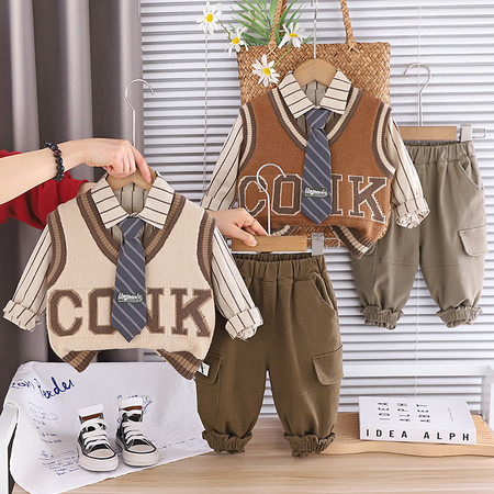 柴小郡&糯米绒针织马甲三件套