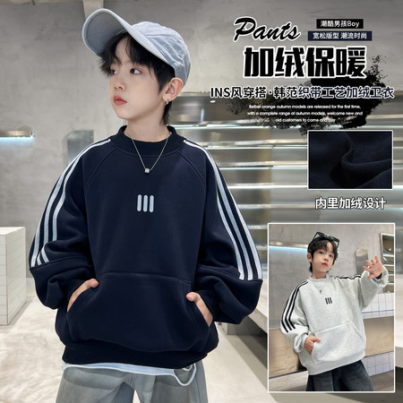 亿棵树童装&Q1290款航线棉衣连帽毛衣套装