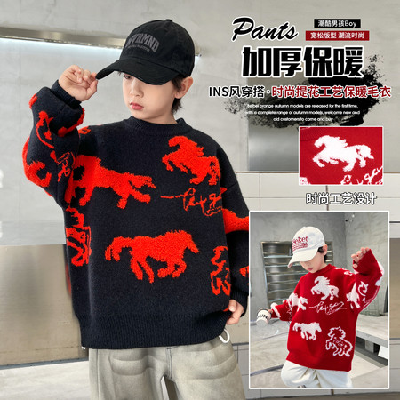 珊妮童装&7608男女童年服小马毛衣