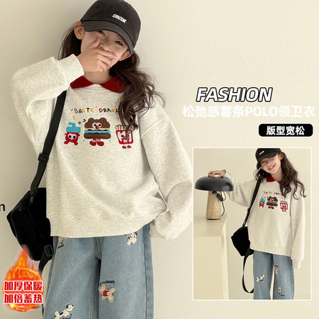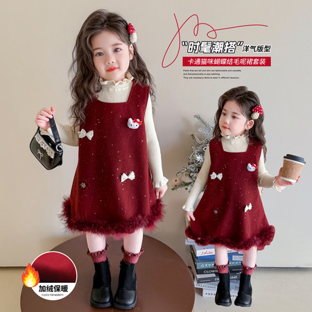 珊妮童装&8801女童毛衣三件套加绒牛仔裤