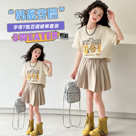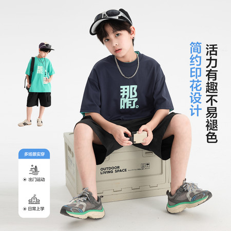 五小七&SJ8429满印大字母涂鸦短袖三件套
