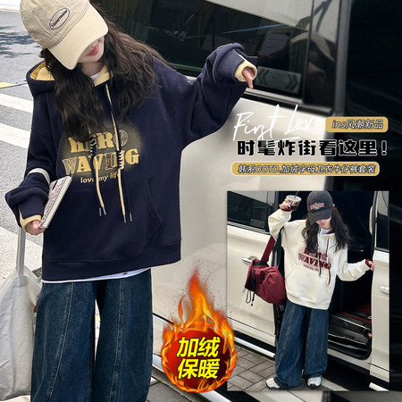 米咔精灵&2772绣花大口袋连帽卫衣加厚款休闲百搭