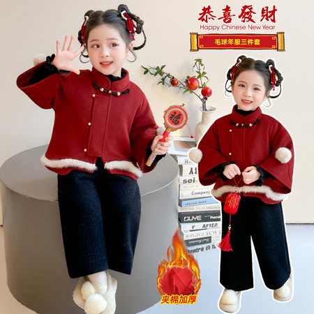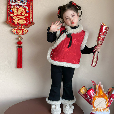 珊妮童装&605女童冬款红色上衣两件套8803裤子
