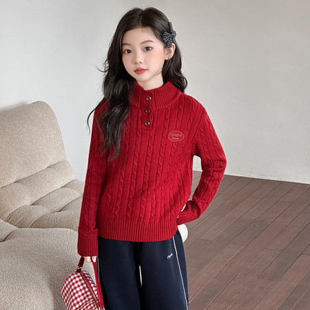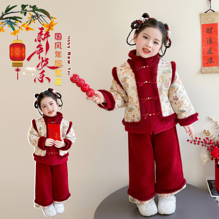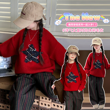 珊妮童装&607红色毛衣马甲套装25912加绒裤