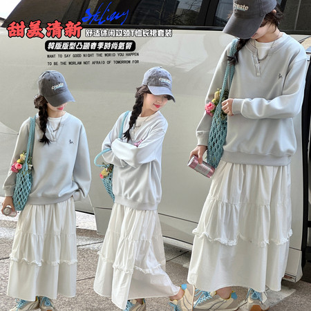 星星年华&DX03867皮马甲长袖连衣裙两件套