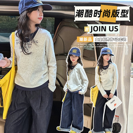 潮.尚&CS8508花边毛衣背心衬衫牛仔裤套装