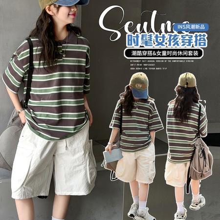 五小七&SJ8431森系条纹碎花短袖三件套