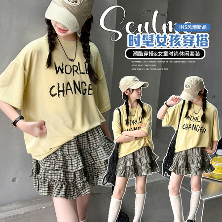 五小七&MT262226格子小鸟短袖两件套