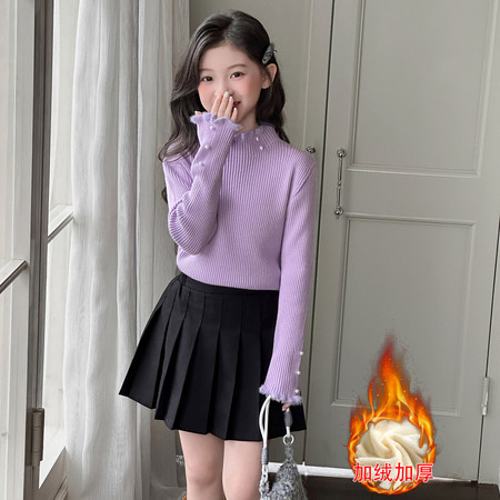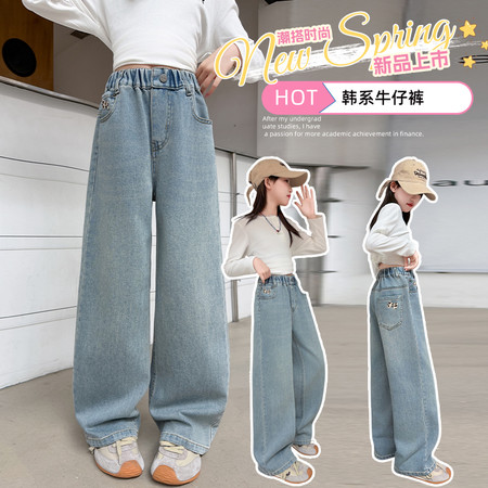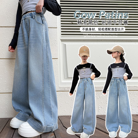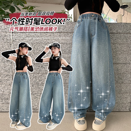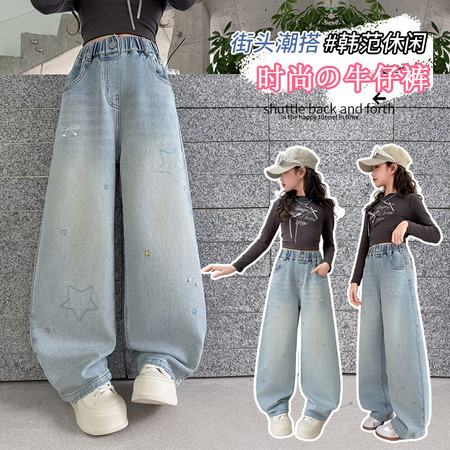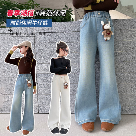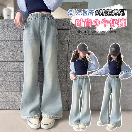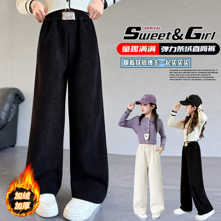 陶陶果童装&6325后袋小字母浅色加绒阔腿裤