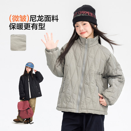 25199龟背型格子拼接款棉衣