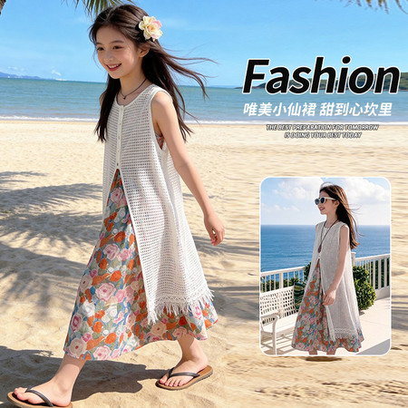 nn童装&25159---挂脖织金蝴蝶马面裙套装