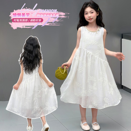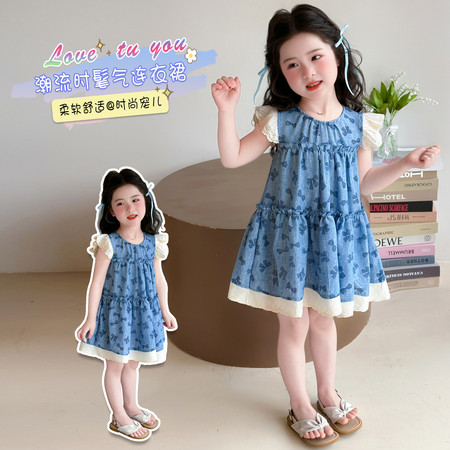 今童旗&2632花边蝴蝶结棉麻连衣裙