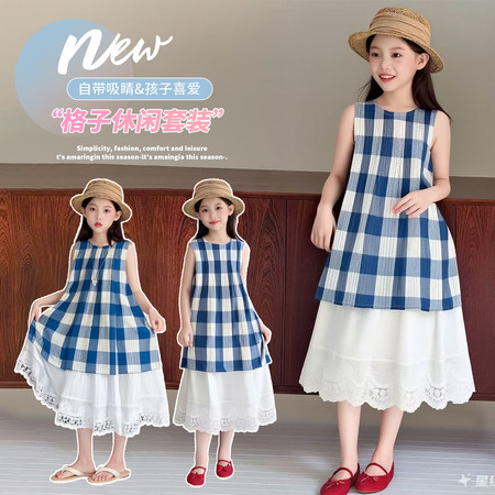 丸子家(贝壳笛)&96款格子裙子两件套爆款现货棉