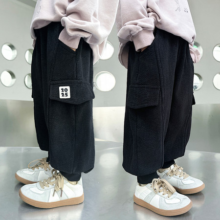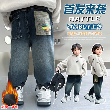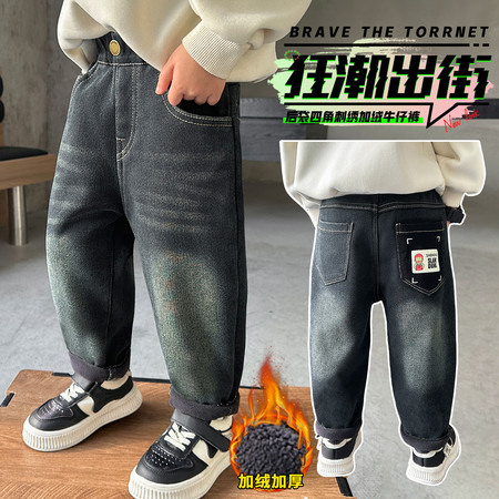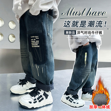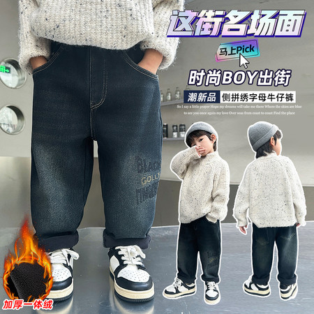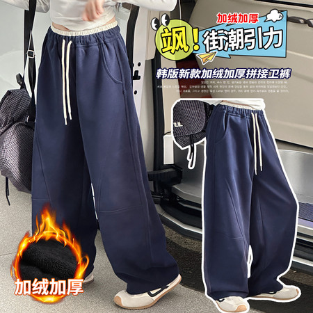 豪涵童装&女童2025冬加绒拼接珠子喇叭裤8826