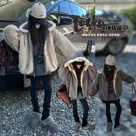 蕊蕊&R98款牛仔针织拼接连帽套装