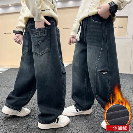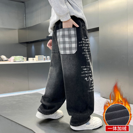 小孩潮品&5148加绒小熊口袋牛仔裤
