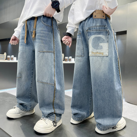 五小七【原五七潮童】&SJ8418绣花字母S牛仔三件套