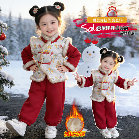 双鱼妮妮&SY-2544女童手套毛衣拜年服套装