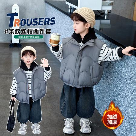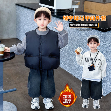 亿棵树童装&Q1273款航线夹棉小马甲三件套