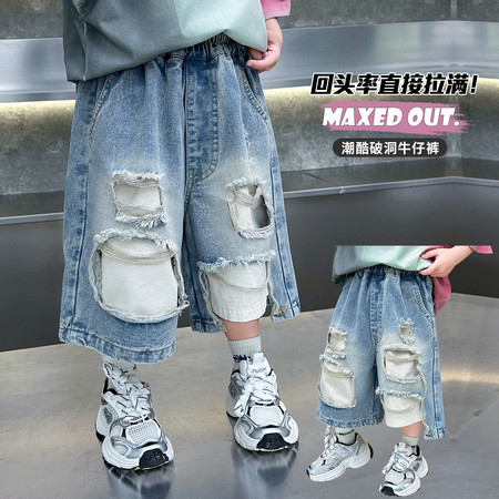 小珰唛&xdm-1950拼接割洞牛仔裤