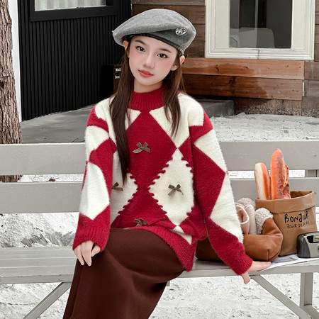 乐蜜豆&2575复古衬衫开衫毛衣套装
